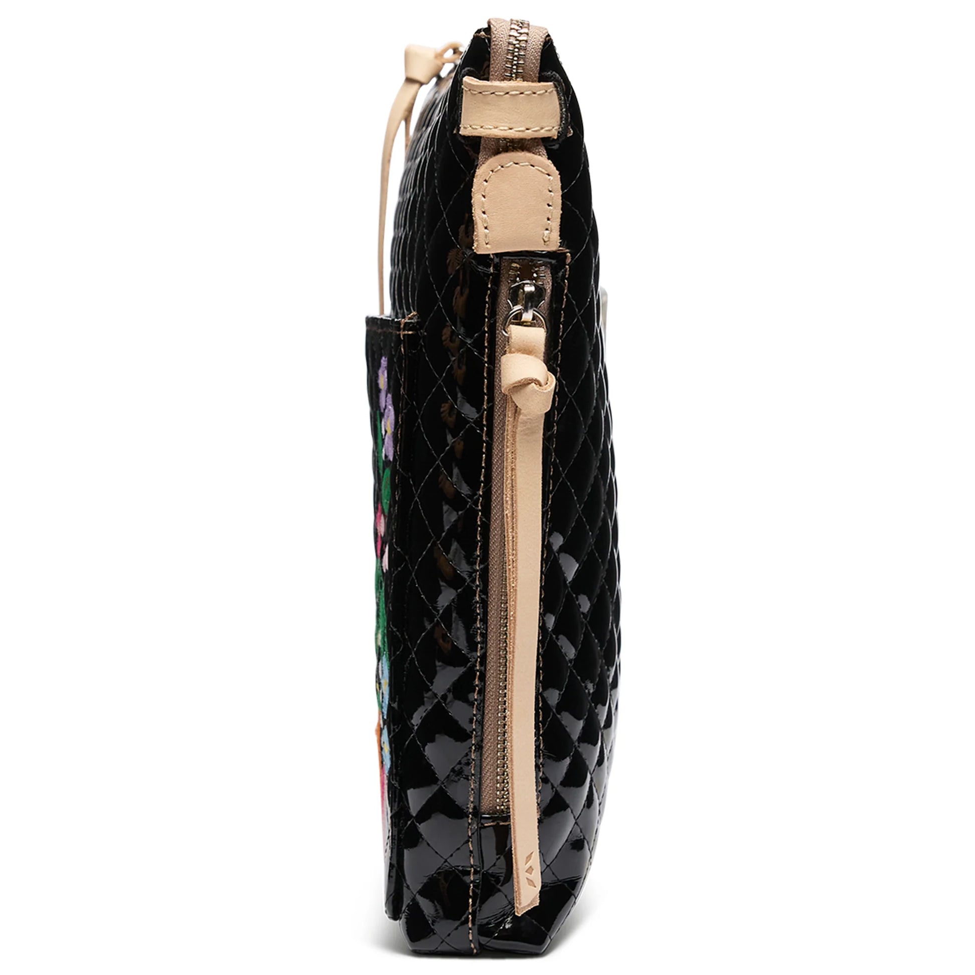 Our new, vertical crossbody has an extra front slip picket and a side zip pocket to streamline your busy life in style. Zip it up and go!