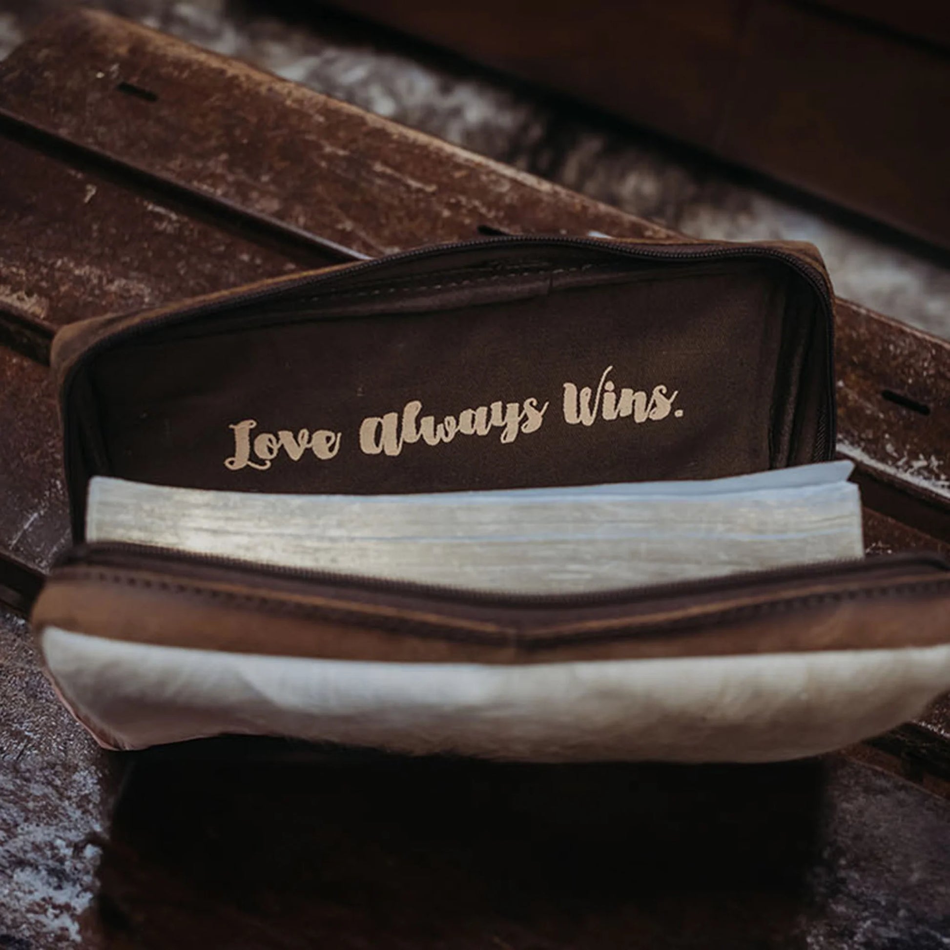 - Inspirational quote on the interior: “Love always wins.”