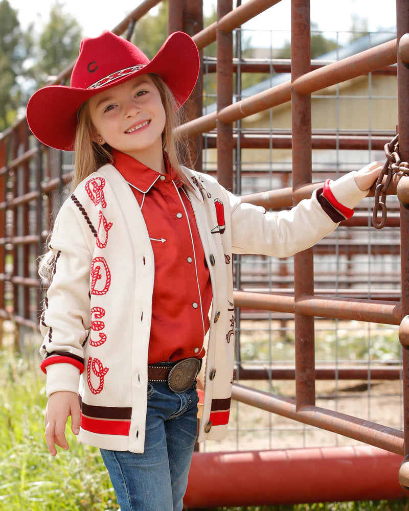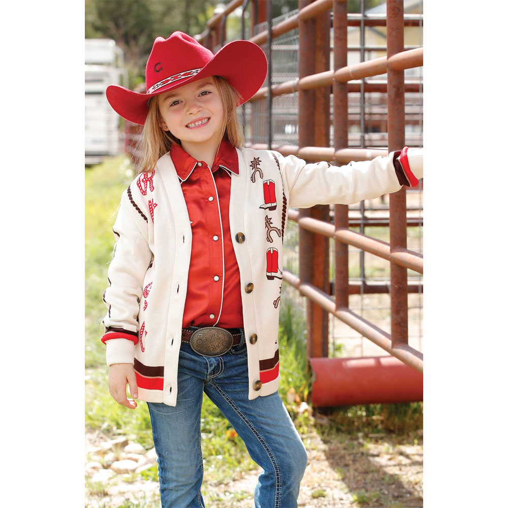 Dress her like a rodeo star in our Match Mom cozy cream printed polyester knit cardigan. This seasonal staple features an array of iconic Western symbols in a vibrant red that will guarantee a second look.