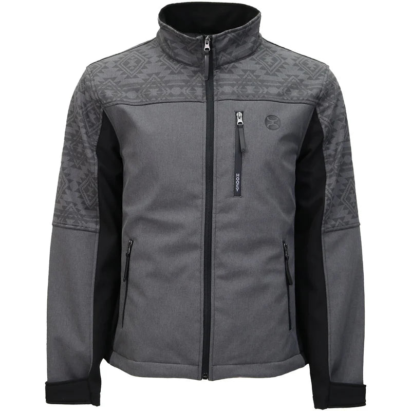 This Hooey Black & Grey men's softshell fleece jacket is perfect for cool or cold weather. Combat the wind or rain with this durable jacket, featuring multifunctional hidden pockets and a headphone holster. 100% Polyester. Casual wear for your everyday tasks.